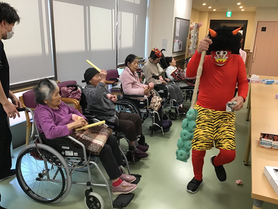 職員が鬼になり、各ユニットにお邪魔しました。