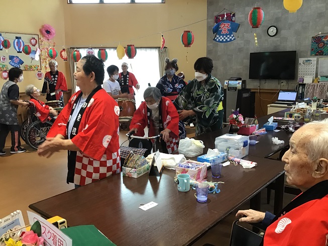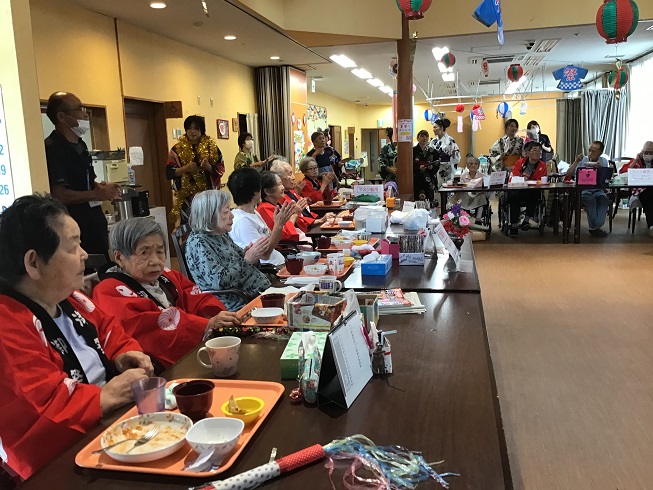 投稿が遅れてしまいましたが(@_@。 先日、みと南部ケアセンターにて夏祭りを開催しました! 職員の出し物でマツケン★サンバを踊ったり食事をしたり! そして盆踊りをしたりと素敵な夏の思い出が増えました(*^-^*)