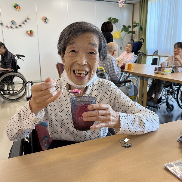 暑い日にはカキ氷!ということで サプライズでカキ氷屋さんをオープンしました(*^-^*) 各ユニットを順番に回り、利用者様からは「わー!!」と歓喜の声が☆ 「美味しい~(*^▽^*)」と笑顔でした! 次回のカキ氷屋さんですが、サプライズでまた各ユニットに突撃します(*^▽^*) お楽しみに☆彡