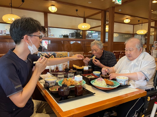 こんにちは!7/22(土)にデイサービスで外食ドライブに行ってきました(^^♪ 好きなメニューを頼んで、お腹がはちきれそうになるまで食べてきました!(^^)! みなさんで一緒に外食は楽しかったですね♪