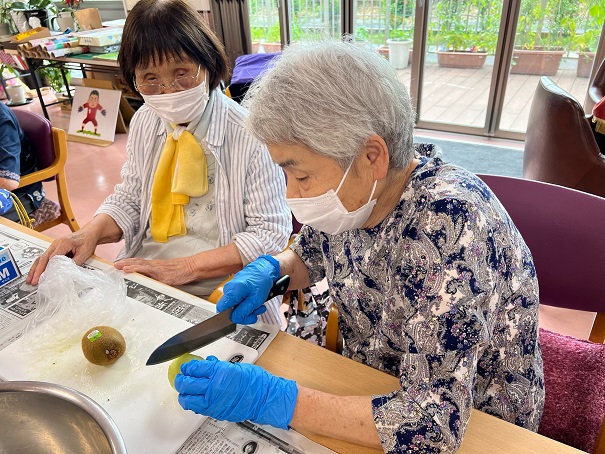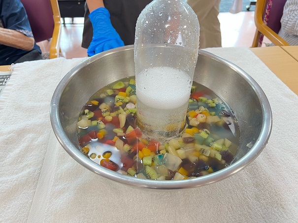 フルーツポンチの仕上げの様子では、みなさんからプチ歓声が上がったので、