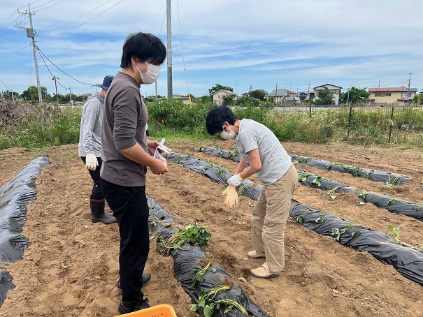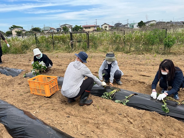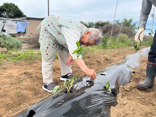 こんにちは! 6/21(水)みと南部ケアセンターの畑に、利用者様と水戸市社協の職員の方に ご協力いただき、さつま芋の苗を植えました(^^)/ 秋には芋掘りも行う予定なので、お時間ある方はぜひ秋の芋掘りに来てください☺