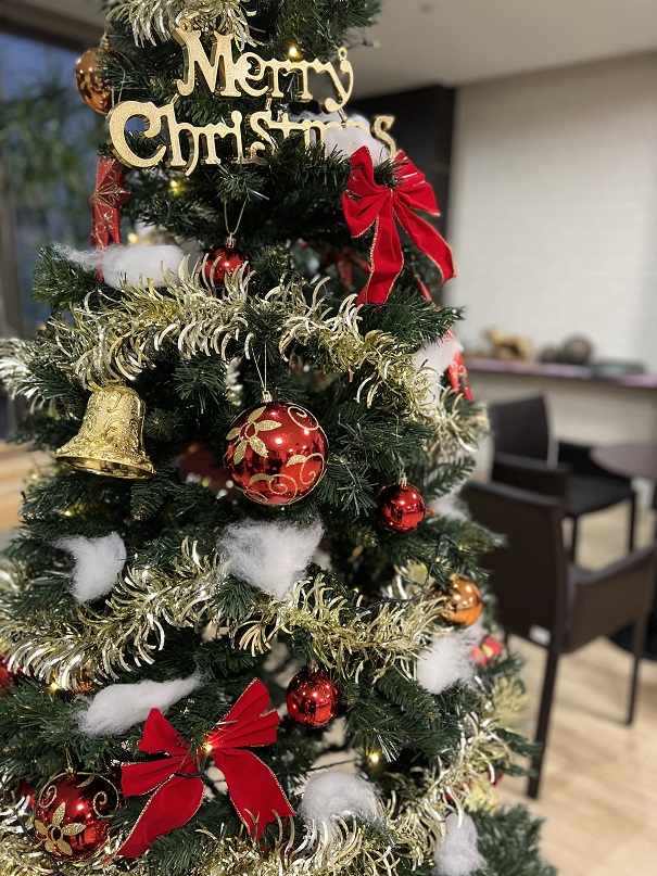 みと東部の玄関には素敵なクリスマスツリーが飾ってあります♬