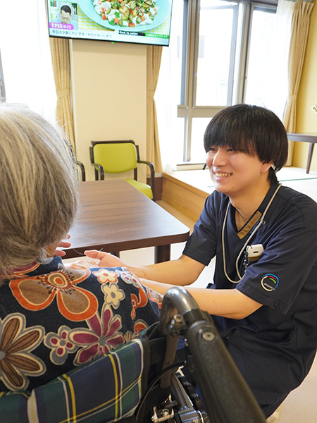 利用者様と日々関わる中で、会話やちょっとした気遣いによって表情が明るくなったり、安心した様子を見せてくださったりする瞬間に、大きなやりがいを感じました。
